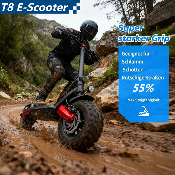Testvoraussetzungen: Fahrergewicht 50 kg, flaches Terrain, vollständig geladene Batterie bis zur vollständigen Entladung. Die tatsächliche Reichweite kann durch Gewicht, Fahrweise, Straßenbedingungen und Batteriestand beeinflusst werden. Angaben dienen nur zur Orientierung.